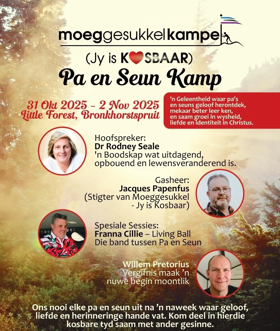 'n Geleentheid waar pa's en seans geloof herontdek, mekaar beter leer ken, en saam groei in wysheid, liefde en identiteit in Christus.